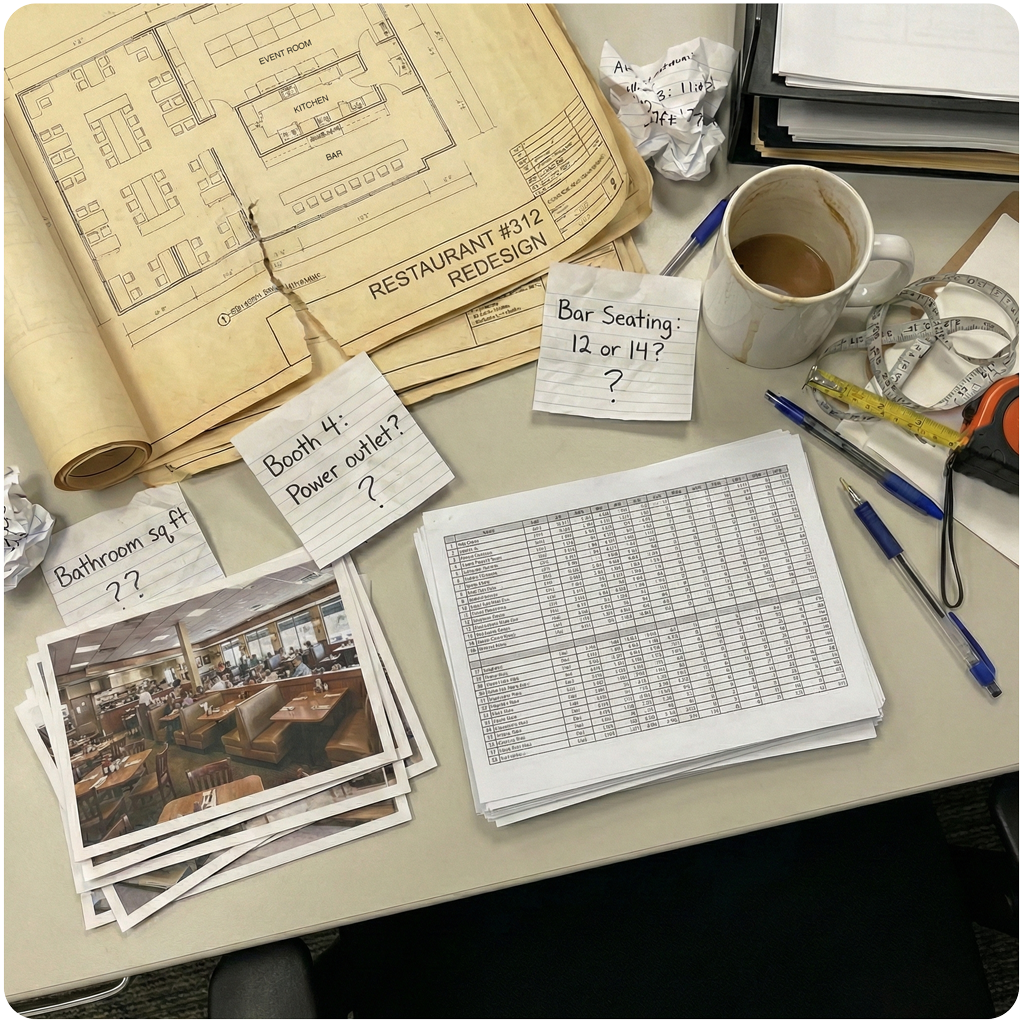 - Too Many Site Visits, Not Enough Time Design, construction, and operations teams often need repeated site access just to answer basic questions, slowing projects and disrupting restaurant operations.